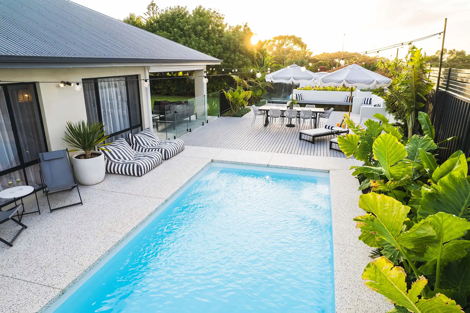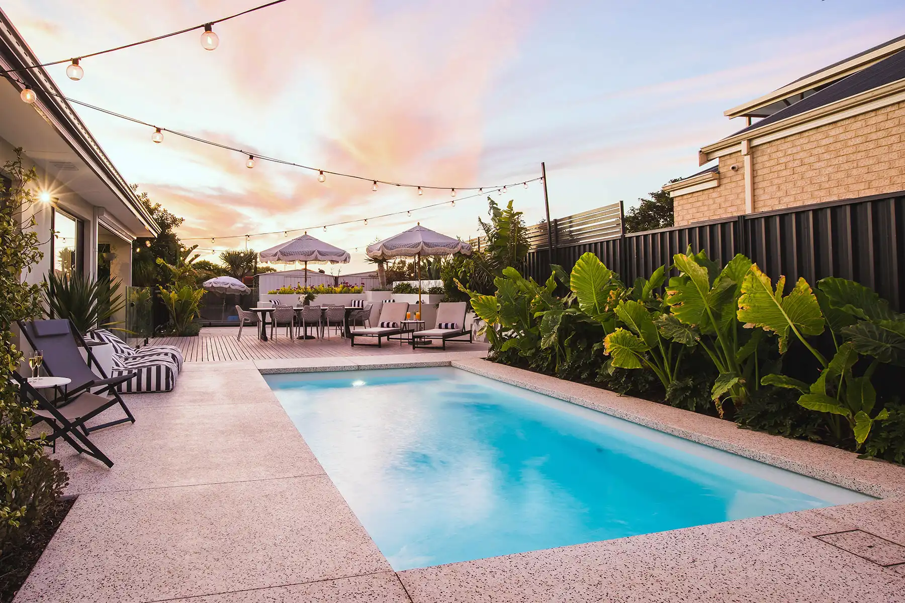 Browse our fibreglass swimming pool gallery and get some great pool design ideas and inspiration that you can use to build your perfect backyard pool area. With decades of experience helping Western Australians create enjoyable backyard oases, we delight in inspiring people to design and build their perfect poolside lifestyle!